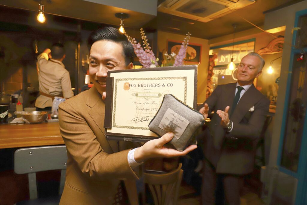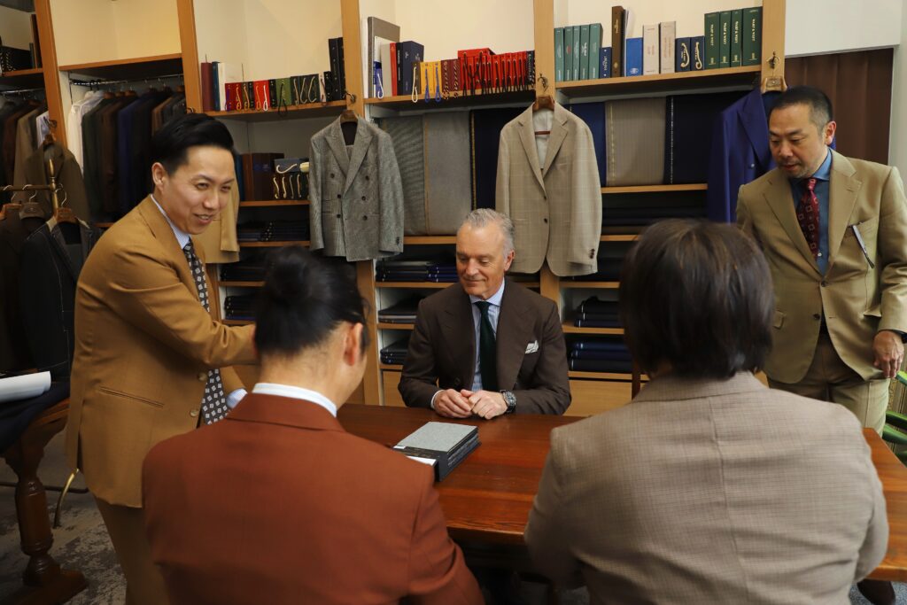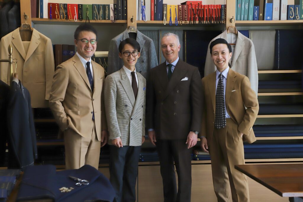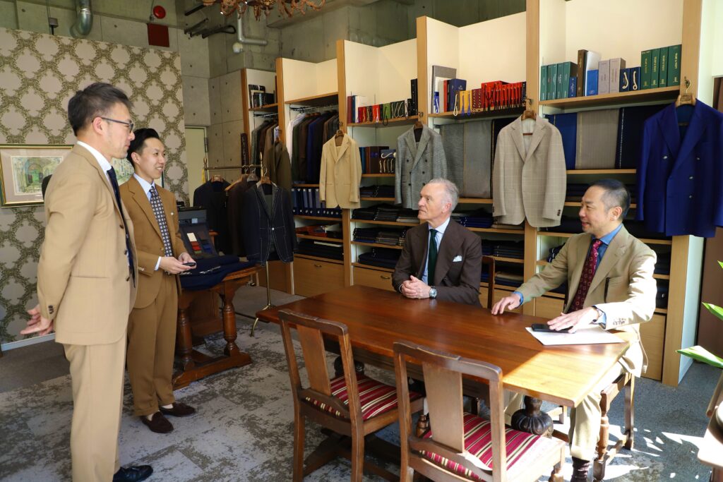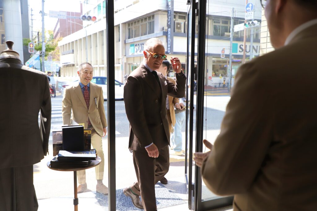 えびすテーラーは、2025年度 日本で最も多くのご注文をいただいたテーラーとして特別賞を受賞しました。当店でのイベントの為だけに遠路イギリスよりお越しいただきました。
