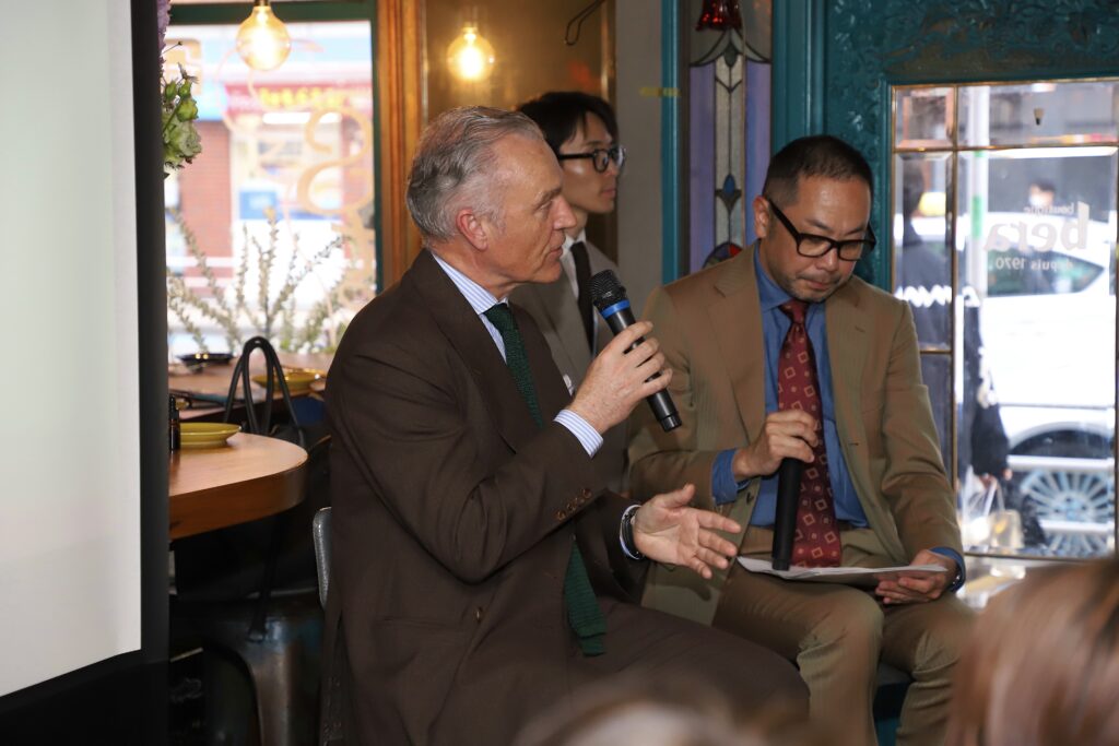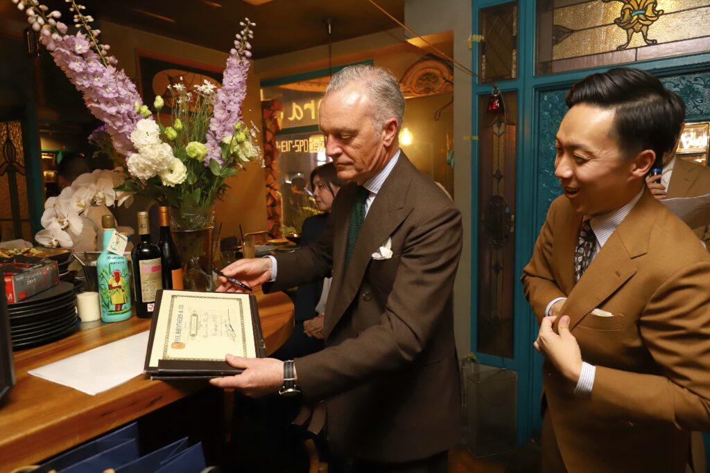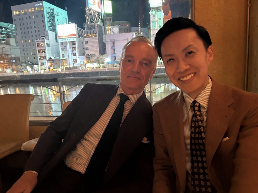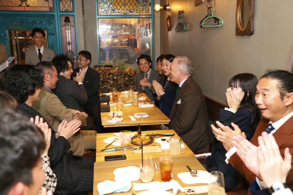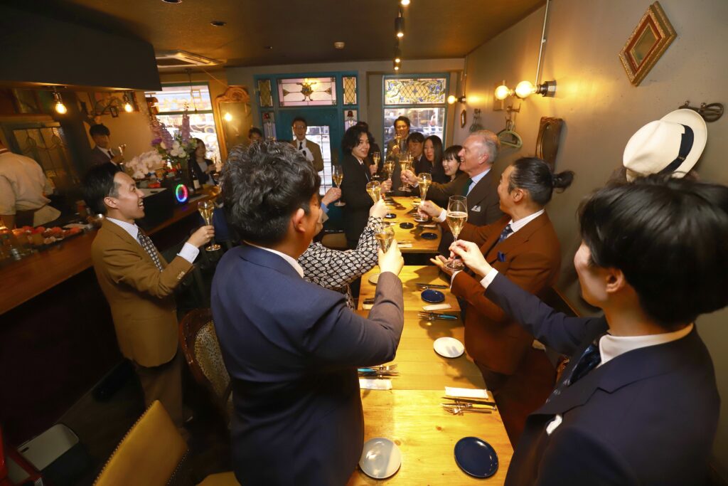 えびすテーラーは、2025年度 日本で最も多くのご注文をいただいたテーラーとして特別賞を受賞しました。当店でのイベントの為だけに遠路イギリスよりお越しいただきました。